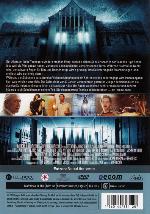 Der Alptraum jedes Teenagers: andere machen Party, doch die sieben Schüler sitzen in der Resenda High School fest, weil sie Mist gebaut haben. Verlassen, allein und hinter verschlossenen Türen. Während es draussen Nacht wird und der schwere Regen für Blitz und Donner sorgt, wird's gruselig, denn das Gewitter hat die Stromleitungen lahm gelegt und das ist wirklich düster. Während die Sieben mit verstörenden Visionen kämpfen und ein Schrecken den andern jagt, wir ihnen langsam klar, was wirklich läuft: Der Geist eines vor 30 Jahren versehentlich getöteten Jungen schleicht durch die dunklen Korridore und macht ihnen die Nacht zur Hölle. Makaber und äusserst bösartig sucht er die Schuldigen an seinem Tod, um Rache zu nehmen, denn die eingesperrten Teenies sollen zahlen... mit ihrem Leben...