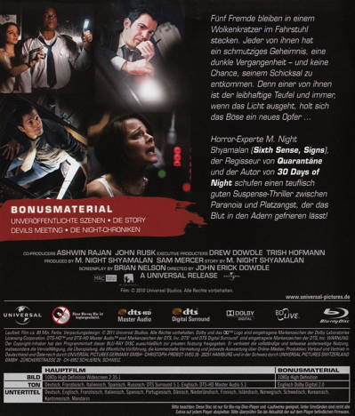 Fünf Fremde bleiben in einem Wolkenkratzer im Fahrstuhl stecken. Jeder von ihnen hat ein schmutziges Geheimnis, eine dunkle Vergangenheit – und keine Chance, seinem Schicksal zu entkommen. Denn einer von ihnen ist der leibhaftige Teufel und immer, wenn das Licht ausgeht, holt sich das Böse ein neues Opfer...