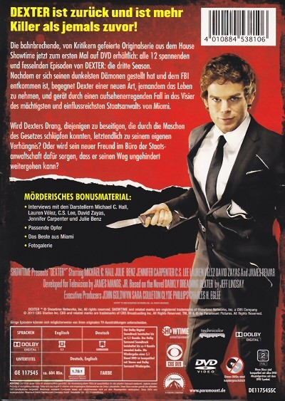 Die bahnbrechende, von Kritikern gefeierte Originalserie aus dem Hause Showtime jetzt zum ersten Mal auf DVD erhältlich: alle 12 spannenden und fesselnden Episoden von DEXTER: die dritte Season.