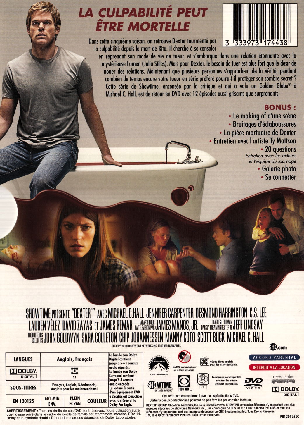 Zu Beginn der fünften Staffel fühlt Dexter sich schuldig an Ritas Tod. Trost sucht er in seinen alten Verhaltensmustern des Tötens und lässt sich auf die völlig unvorhergesehene Beziehung mit der geheimnisvollen Lumen (Julia Stiles) ein. Aber Dexters Mordlust ist grösser als der Wunsch nach menschlicher Nähe. Immer mehr Menschen in seinem Umfeld kommen seinem mörderischen Geheimnis gefährlich nahe. Wie lange kann Amerikas beliebtester Serienkiller seine dunkle Seite noch verbergen? Die Showtime-Erfolgsserie mit Golden Globe Gewinner Michael C. Hall ist zurück: mit 12 schrecklich spannenden Episoden.