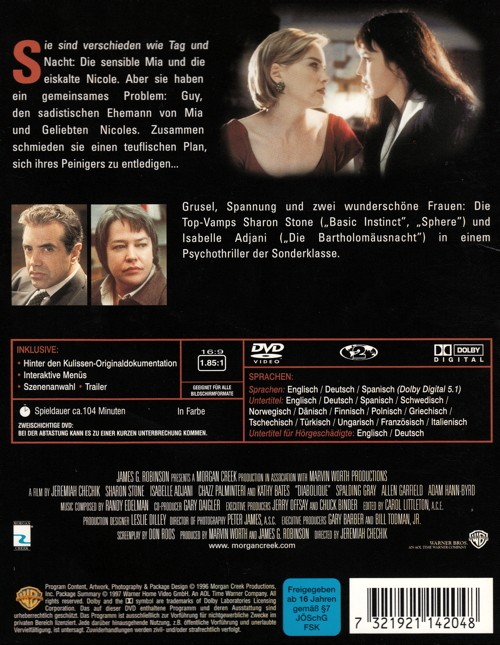 Sie sind verschieden wie Tag und Nacht: Die sensible Mia und die eiskalte Nicole. Aber sie haben ein gemeinsames Problem: Guy, den sadistischen Ehemann von Mia und Geliebten Nicoles. Zusammen schmieden sie einen Plan, sich ihres Peinigers zu entledigen. Der Mord gelingt, aber dann verschwindet die Leiche auf mysteriöse Weise, der Schrecken beginnt auf Neue... Grusel, Spannung und zwei wunderschöne Frauen - Ein diabolisches Vergnügen.