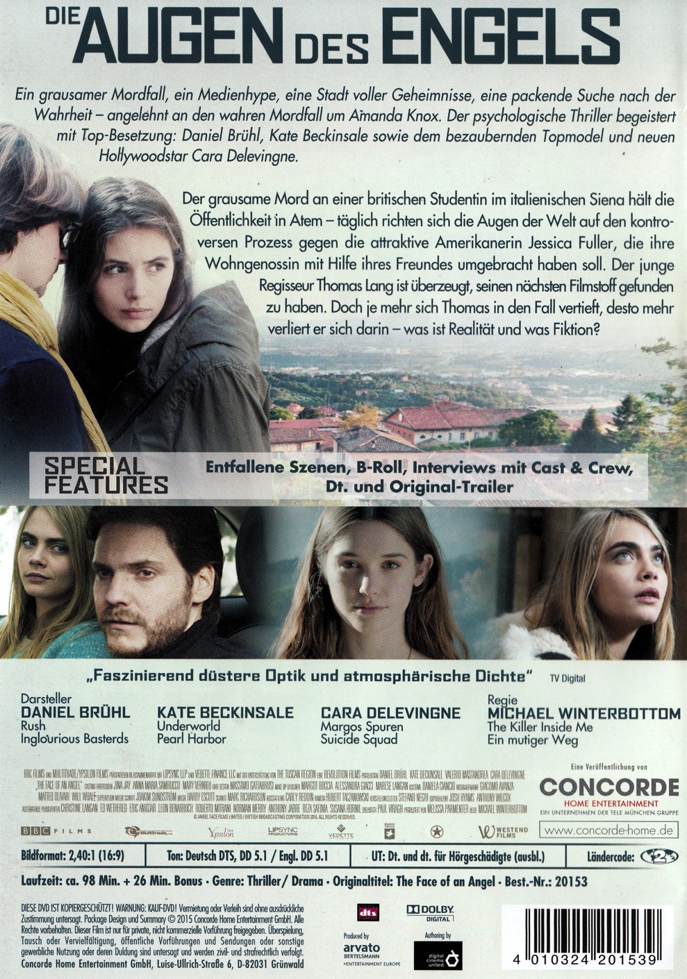 Der grausame Mord an einer britischen Studentin im italienischen Siena hält die Öffentlichkeit in Atem - täglich richten sich die Augen der Welt auf den kontroversen Prozess gegen die attraktive Amerikanerin Jessica Fuller, die ihre Wohngenossin mit Hilfe ihres Freundes umgebracht haben soll. Der junge Regisseur Thomas Lang ist überzeugt, seinen nächsten Filmstoff gefunden zu haben. Vor Ort trifft er sich mit der Journalistin Simone Ford, die den Prozess mitverfolgt und ein Buch über das Verbrechen geschrieben hat. Doch je mehr sich Thomas in den Fall vertieft, desto mehr verliert er sich darin. Er hinterfragt seine eigenen Motive und verliert das Vertrauen in sich und sein Können - bis ihm auf den Strassen die Studentin Melanie begegnet...