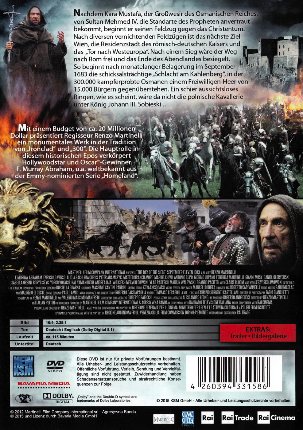 Wie spannend Geschichte wirklich ist- und das insbesondere an sogenannten „Wendepunkten“- verdeutlicht einmal mehr der Monumentalfilm „Die Belagerung“. Wie der Titel bereits andeutet, zeigt dieser Film die Belagerung Wiens durch das Osmanische Reich im Jahre 1683, das damals auf dem Weg war, ganz Europa zu unterwerfen. Und am 11.September desselben Jahres fand schließlich die legendäre Schlacht der polnischen Kavallerie gegen die Türken statt, die das Blatt in diesem Krieg endgültig wenden sollte...Gedreht an Originalschauplätzen und mit gewaltigen Schlachtszenen ausgestattet, gibt Oscar- und Golden Globe-Gewinner F. Murray Abraham („Amadeus“, „Scarface“) in der Hauptrolle des Priesters Marco D'Aviano, den „Retter Wiens“.