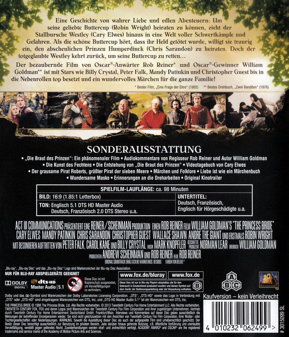 Alles was zu einem richtigen Abenteuer gehört, kommt in diesem Film vor. Degenduelle, Ringkämpfe, Folter, Gift, wahre Liebe, Hass, Rache und Leidenschaft, gute und böse Menschen, schöne Frauen, Riesen, Schlangen und Ungeheuer. Grossvater erzählt seinem kranken Enkel von Buttercup und ihrem Helden Westley, die einander verlieren, als Westley mit dem Piraten zieht, und sich wiederfinden, als Buttercup gerade den bösen Prinzen heiraten soll.