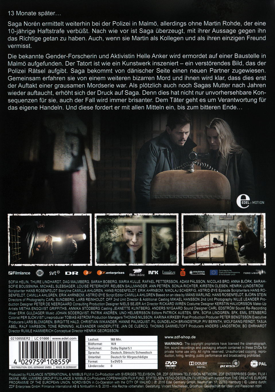 Saga Norén ermittelt weiterhin bei der Polizei in Malmö, allerdings ohne Martin Rohde, der eine 10-jährige Haftstrafe verbüsst. Nach wie vor ist Saga überzeugt, mit ihrer Aussage gegen ihn das Richtige getan zu haben. Auch, wenn sie Martin als Kollegen und als ihren einzigen Freund vermisst. Die bekannte Gender-Forscherin und Aktivistin Helle Anker wird ermordet auf einer Baustelle in Malmö aufgefunden. Der Tatort ist wie ein Kunstwerk inszeniert - ein verstörendes Bild, das der Polizei Rätsel aufgibt. Saga bekommt von dänischer Seite einen neuen Partner zugewiesen. Gemeinsam erfahren sie von einem weiteren bizarren Mord und ihnen wird klar, dass dies erst der Auftakt einer grausamen Mordserie war. Als plötzlich auch noch Sagas Mutter nach Jahren wieder auftaucht, erhöht sich der Druck auf Saga. Denn dies hat nicht nur unvorhersehbare Konsequenzen für sie, sondern auch der Fall wird immer brisanter. Dem Täter geht es um Verantwortung für das eigene Handeln. Und diese fordert er mit allen Mitteln ein, bis zum bitteren Ende...