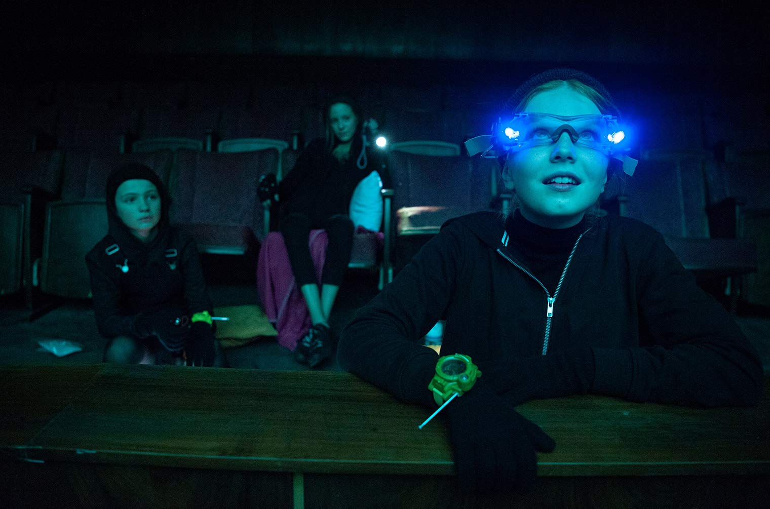 1, 2, 3 - PowerSportskanone Franzi (Alexandra Petzschmann), Leseratte Kim (Lilli Lacher) und die modebegeisterte Marie (Paula Renzler) sind beste Freundinnen - und Nachwuchs-Detektivinnen. In den Sommerferien nehmen sie an einem Theaterprojekt zu Peter Pan teil. Während der Probe mit dem schrulligen Regisseur Robert Wilhelms (Jürgen Vogel) ertönen plötzlich seltsame Geräusche im Saal, das Licht beginnt bedrohlich zu flackern, Kostüme werden zerschnitten und auf dem Schminkspiegel erscheint eine Drohbotschaft. Spukt hier wirklich ein einsames Phantom und sinnt auf Rache? Doch auch einige der anderen Workshop-Teilnehmer verhalten sich merkwürdig. Wer hat ein Motiv, dem Theater zu schaden? Ein neuer Fall für Franzi, Kim und Marie! Werden DIE DREI !!! das Rätsel lösen?