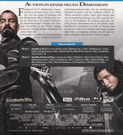 - Titel Die drei Musketiere [Blu-ray 3D]