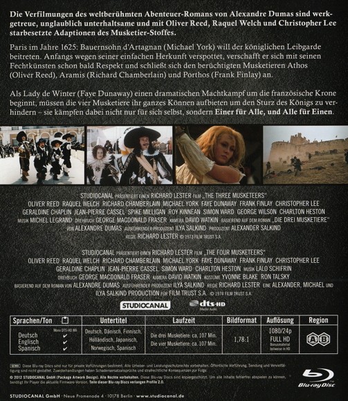 Paris im Jahre 1625: Bauernsohn d’Artagnan will unbedingt der königlichen Leibgarde beitreten. Anfangs wegen seiner einfachen Herkunft verspottet, verschafft er sich mit seinen Fechtkünsten schon bald Respekt und schliesst sich den berüchtigten Musketieren Athos, Aramis und Porthos an. Als der intrigante Kardinal Richelieu die Macht ergreifen will, eilen die vier Freunde Königin Anne zu Hilfe...
