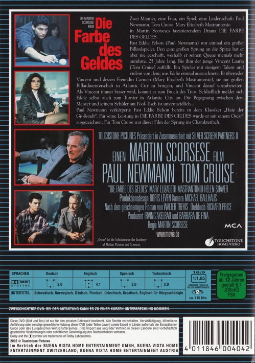 - Schauspieler Tom Cruise, John Turturro, Paul Newman, Bill Cobbs, Mary Elizabeth Mastrantonio, Helen Shaver
