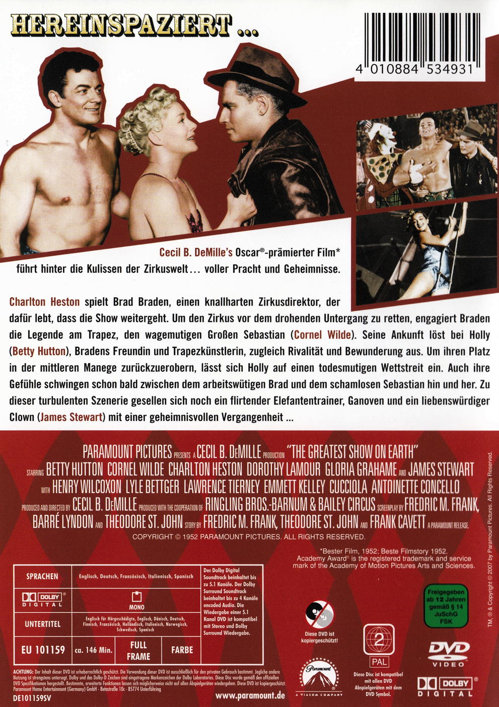 Betty Hutton, Cornel Wilde, Dorothy Lamour, James Stewart, Charlton Heston, George Barnes, Fredric M. Frank, Cecil B. DeMille, Anne Bauchens, J. Peverell Marley...Theodore St. John, W. Wallace Kelley, Frank Cavett, Barry Lyndon