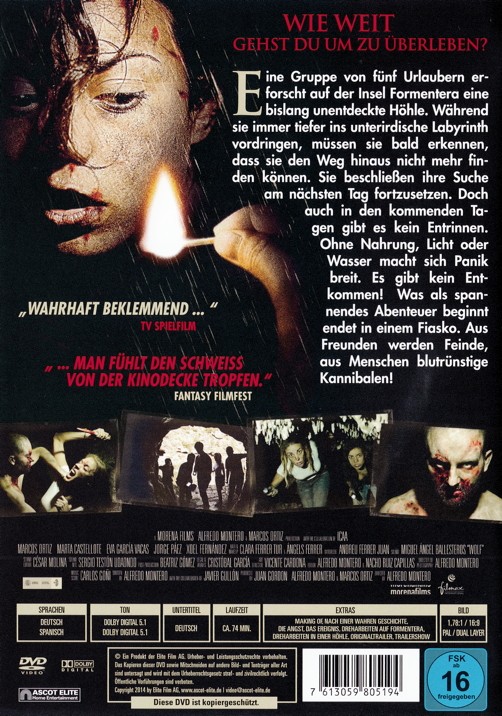 Formentera: weißer Sand, kristallklares Wasser, unberührte Natur. Fünf Freunde freuen sich auf den Urlaub ihres Lebens auf der spanischen Ferieninsel. Als sie nach ihrer Ankunft eine mysteriöse Höhle entdecken, ahnt noch niemand von ihnen, dass sie für ihre Neugier bitter bezahlen müssen. Denn aus dieser Höhle gibt es kein Entkommen! Als die Vorräte knapp werden, treffen die Ersten drastische Entscheidungen, um das eigene Überleben zu sichern. Was als spannendes Abenteuer beginnt, endet in einem Fiasko. Aus Freunden werden Feinde, aus Menschen blutrünstige Kannibalen!