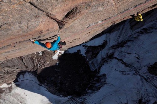 In ihrem freien Aufstieg haben sich die drei Profi-Kletterer so nahe wie möglich an der originalen Route orientiert und Variationen lediglich dort integriert, wo es die “Bavarian Direct” erforderte. Aufgrund der unstabilen Wetterlage, die ihnen mitunter Schnee bescherte, konnten sie die Route jedoch nicht wie geplant in einem Stück erklettern. Nach mehreren Tagen und zahlreichen Versuchen an der 700 Meter hohen Wand gelang ihnen schließlich der Aufstieg bis zum Gipfel.