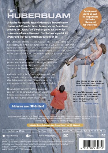 Es ist ihre letzte grosse Herausforderung als Extremkletterer: Thomas und Alexander Huber, bekannt als die Huberbuam, brechen zur "Karma" bei Berchtesgaden auf. Als ihre persönliche "Schicksalsroute" haben sie eine Wand gewählt, die sie bisher noch nicht bezwingen konnten und die als eine der schwersten überhaupt gilt. Neben atemberaubenden Kletterszenen in 3D zeigt der Film Zeitrafferaufnahmen von ungeahnter Schönheit und Landschaftsbilder, in denen man die Tiefe des Raumes sinnlich erspüren kann.