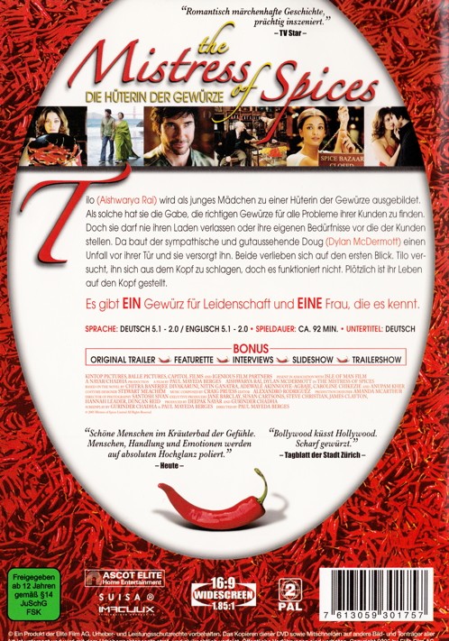 Tilo lebt und arbeitet in einem kleinen Laden im kulturellen Schmelztiegel San Francisco. Dort hütet und verkauft die Inderin ihre Schätze, Gewürze aus aller Welt. Dabei besitzt sie die besondere Gabe, zu spüren, was den Menschen, die in ihren Laden kommen, fehlt. Sie versteht es, die Gewürze so einzusetzen, dass es den Menschen besser geht. Als eines Tages der attraktive Architekt Doug ihren Laden betritt, beginnt Tilo, die bisher allein für ihren Laden und die Gewürze gelebt hat, zu ahnen, dass sie vor einer schwierigen Entscheidung steht...
