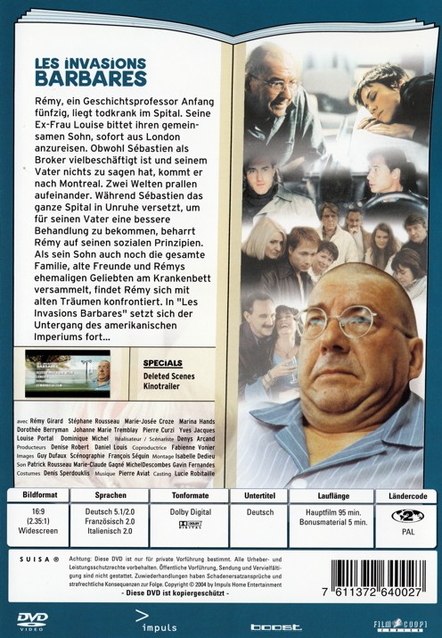 - Schauspieler Marie-Josee Croze, Yves Jacques, Remy Girard, Marina Hands, Dorothee Berryman, Johanne-Marie Tremblay, Sophie Lorain, Stephane Rousseau, Pierre Curzi, Dominique Michel
