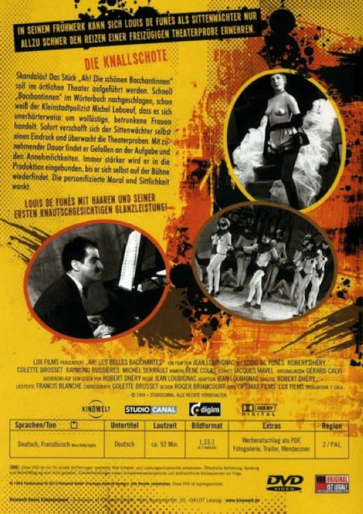 Ein Theaterstück mit dem Titel "Ah! Die schönen Bachantinnen" befindet sich kurz vor der Premiere. Aber was sind bloss, Bachantinnen? Das Lexikon umfasst den Begriff als "wollüstige Frauen mit zerzaustem Haar". Grund genug für Sittenwächter Michel Leboeuf mal der Sache auf den Grund zu gehen. Nach und nach scheint der konservative Polizist Geschmack an der Darbietung zu finden und wird am Ende sogar in das Stück mit einbezogen.
