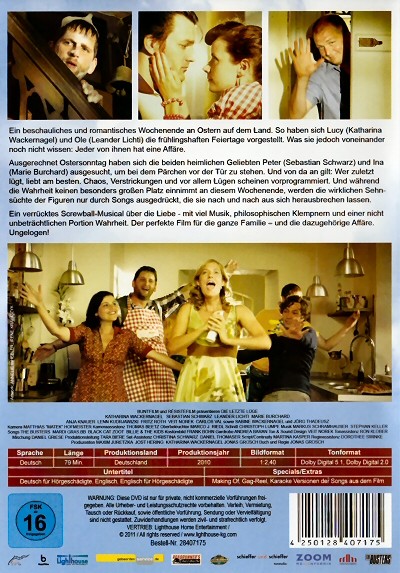 Ausgerechnet den Ostersonntag haben sich die beiden heimlichen Geliebten Peter (Sebastian Schwarz) und Ina (Marie Burchard) ausgesucht, um bei dem Pärchen vor der Tür zu stehen. Und von da an gilt: Wer zuletzt lügt, liebt am besten. Chaos, Verstrickungen und vor allem Lügen scheinen vorprogrammiert. Und während die Wahrheit keinen besonders grossen Platz einnimmt an diesem Wochenende, werden die wirklichen Sehnsüchte der Figuren nur durch Songs ausgedrückt, die sie nach und nach aus sich herausbrechen lassen.
