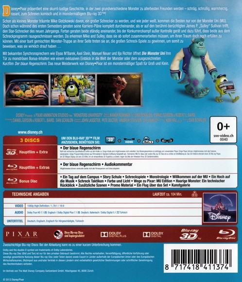 Disney-Pixar präsentiert eine skurril-lustige Geschichte, in der zwei grundverschiedene Monster zu allerbesten Freunden werden! Schon als kleines Monster träumte Mike Glotzkowski davon, ein grosser Schrecker zu werden, und wie jeder weiss, kommen die Besten nur von der Monster Uni (MU). Doch schon während des ersten Semesters geraten seine Karriere-Pläne komplett durcheinander, als er auf den berühmt-berüchtigten James P. "Sulley" Sullivan trifft, den Star-Schrecker des neuen Jahrgangs. Fortan geraten beide ständig aneinander, bis der Konkurrenzkampf ausser Kontrolle gerät und dazu führt, dass beide aus dem Schreckprogramm rausgeschmissen werden. Da erkennen Mike und Sulley, dass sie ab sofort zusammenarbeiten müssen, um ihren Traum doch noch erfüllen zu können...