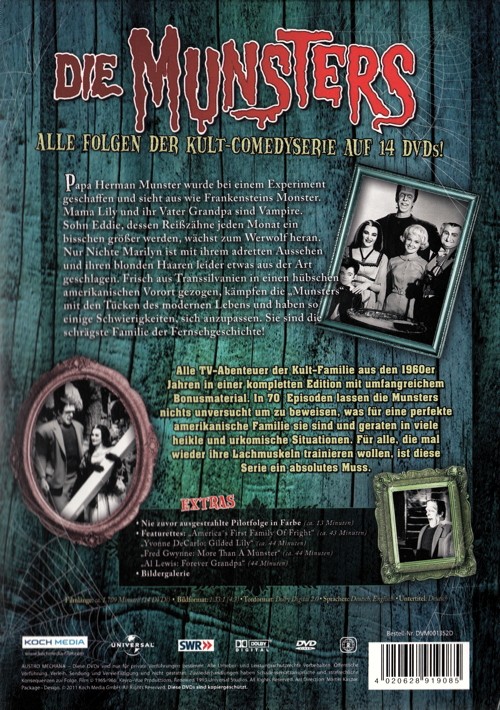 Sie sind die schrägste Familie der Welt: Papa Herman Munster ist bei einem Experiment entstanden, Mama Lily Munster und Grandpa Munster sind Vampire und Sohn Eddy ist ein kleiner Werwolf. Nur die Nichte Marylin ist mit ihrem adretten Aussehen und ihren blonden Haaren leider etwas aus der Art geschlagen. Frisch aus Transsilvanien in einen hübschen amerikanischen Vorort gezogen, kämpfen die Munsters mit den Tücken des modernen Lebens und haben so einige Schwierigkeiten, sich anzupassen.