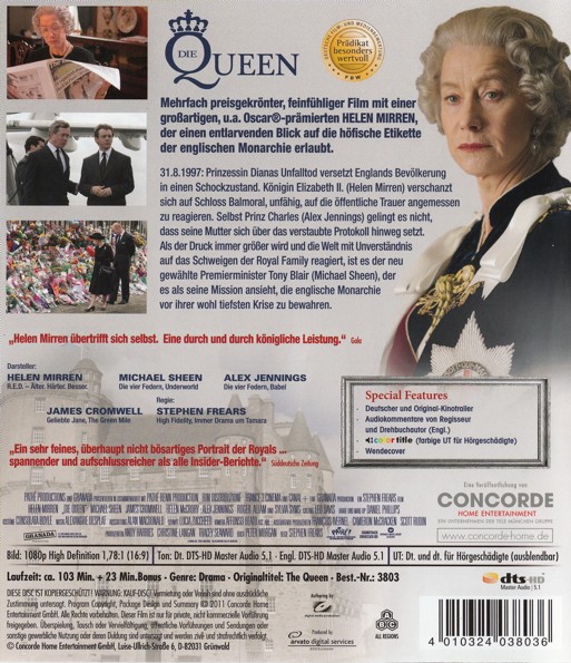 Die Doku-Fiction von Starregisseur Stephen Frears, die Helen Mirren den Oscar für die beste weibliche Hauptrolle einbrachte, ist witzig, hintersinnig, seltsam berührend. "ein Königsdrama der zeitgenössischen Medienöffentlichkeit" (Basler Zeitung).