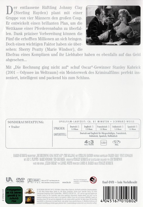 Der entlassene Häftling Johnny Clay plant mit einer Gruppe von vier Männern den großen Coup. Er entwickelt einen brillianten Plan, um die Wettkasse einer Pferderennbahn zu überfallen. Dank präziser Vorbereitung können die Fün die erhofften Millionen an sich bringen. Doch einen wichtigen Faktor haben sie übersehen: Sherry Peatty, die Ehefrau eines Komplizen, und ihr Liebhaber haben es ebenfalls auf das Geld abgesehen...
