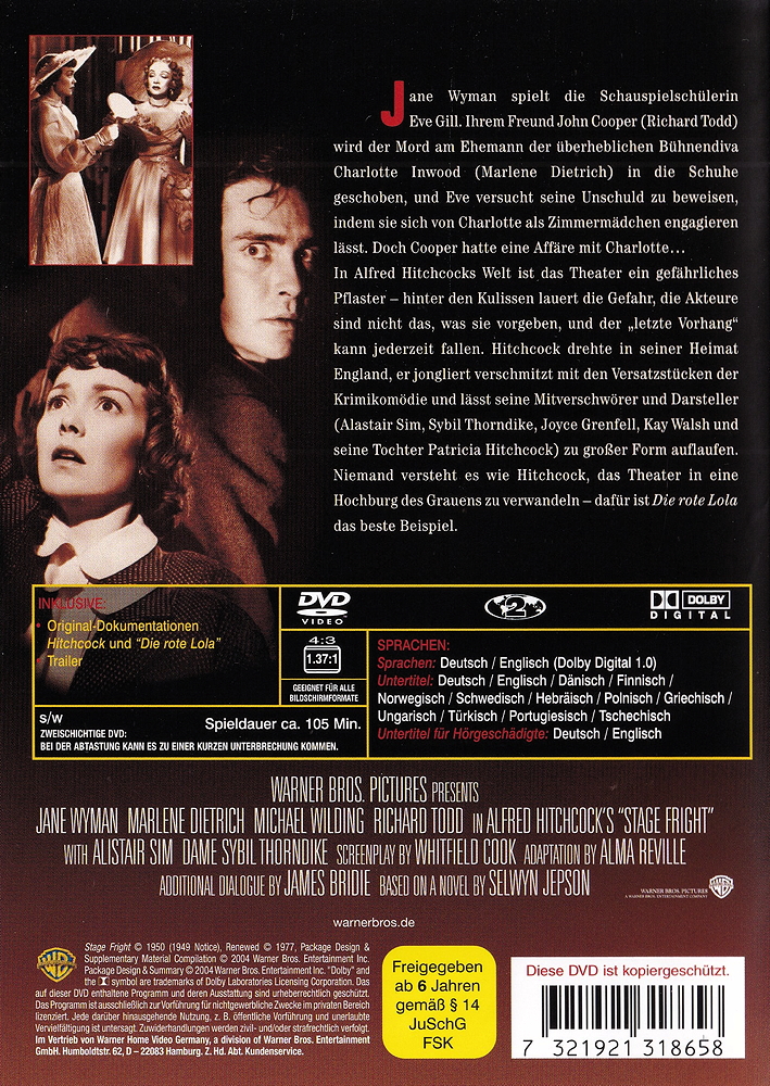 Jane Wyman spielt die Schauspielschülerin Eve Gill. Ihrem Freund John Cooper (Richard Todd) wird der Mord am Ehemann der überheblichen Bühnendiva Charlotte Inwood (Marlene Dietrich) in die Schuhe geschoben, und Eve versucht seine Unschuld zu beweisen, indem sie sich von Charlotte als Zimmermädchen engagieren lässt. Doch Cooper hatte eine Affäre mit Charlotte...