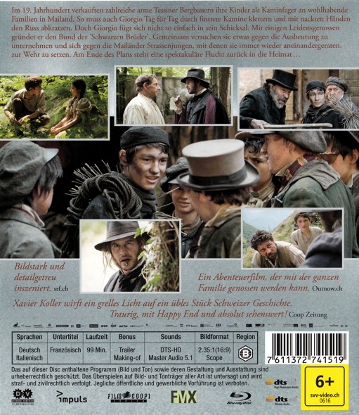 Im 19. Jahrhundert wird der kleine Giorgio (Fynn Henkel) von seinen Eltern auf den Hungerweg geschickt. Ihn ereilt damit ein Schicksal, das viele teilen, denn zahlreiche arme Tessiner Bergbauern verkaufen ihre Kinder als Kaminfeger an wohlhabende Familien in Mailand. So muss Giorgio, wie viele seiner Altersgenossen, durch finstere Kamine klettern und mit nackten Händen den Ruß vom Innern der Schornsteine abkratzen. Doch Giorgio fügt sich nicht so einfach in sein Schicksal. Gemeinsam mit einigen Leidensgenossen gründet er den Bund der Schwarzen Brüder. Zusammen versuchen die Kinder, etwas gegen die Ausbeutung zu unternehmen und sich gegen die Mailänder Straßenjungen, mit denen sie immer wieder aneinandergeraten, zur Wehr zu setzen. Am Ende des Plans steht eine spektakuläre Flucht zurück in die Heimat...