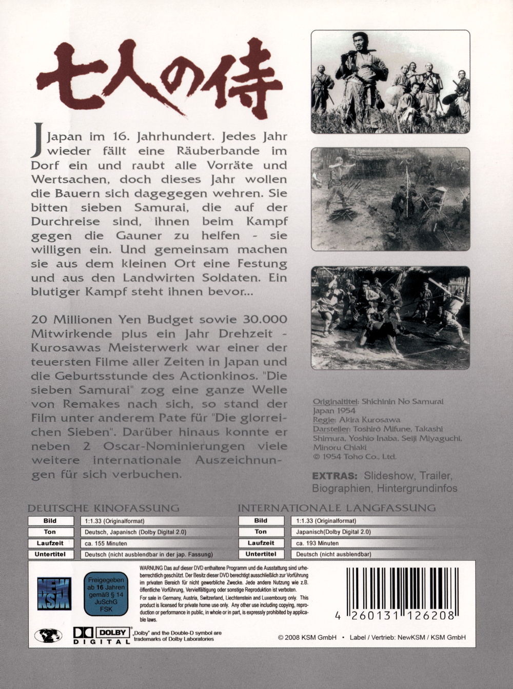 Japan im 16. Jahrhundert. Einmal im Jahr fällt eine Räuberbande in ein Dorf ein und klaut den Bewohnern alle Vorräte und Wertsachen. Doch dieses Jahr wollen die Bauern sich dagegen wehren. Sie werben sieben Samurai an, die ihnen beim Kampf gegen die Banditen helfen sollen. Die Samurai willigen ein und gemeinsam machen sie aus dem kleinen Ort eine Festung und aus den Landwirten Soldaten. Ein blutiger Kampf steht ihnen bevor...