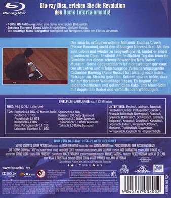 - Titel Die Thomas Crown Affäre [Blu-ray]