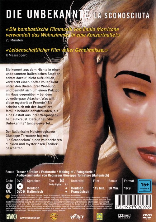 Sie kommt aus dem Nichts in einer unbekannten italienischen Stadt an, versteckt einen Koffer voller Geld unter den Dielen ihrer Wohnung und bemüht sich um einen Putzjob im Hause gegenüber -bei dem Juwelierpaar Adacher. Was will diese mysteriöse Fremde? Sie scheint sich mit einer Juweliersfamilie beinahe anzufreunden, als eine grausame Gestalt aus ihrer Vergangenheit auftaucht. Darauf hat die "Unbekannte" lange gewartet...