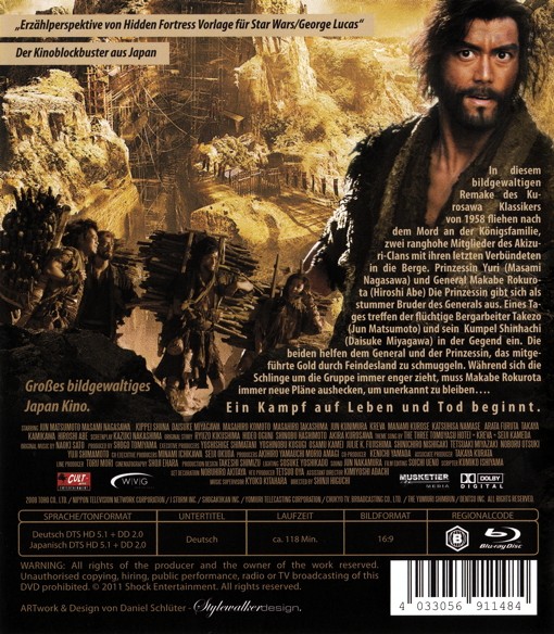 In diesem bildgewaltigen Remake des Kurosawa Klassikers von 1958 fliehen nach dem Mord an der Königsfamilie, zwei ranghohe Mitglieder des Akizuri-Clans mit ihren letzten Verbündeten in die Berge. Prinzessin Yuri und General Makabe Rokurota Die Prinzessin gibt sich als stummer Bruder des Generals aus. Eines Tages treffen der flüchtige Bergarbeiter Takezo und sein Kumpel Shinhachi in der Gegend ein. Die beiden helfen dem General und der Prinzessin, das mitgeführte Gold durch Feindesland zu schmuggeln. Während sich die Schlinge um die Gruppe immer enger zieht, muss Makabe Rokurota immer neue Pläne aushecken, um unerkannt zu bleiben...