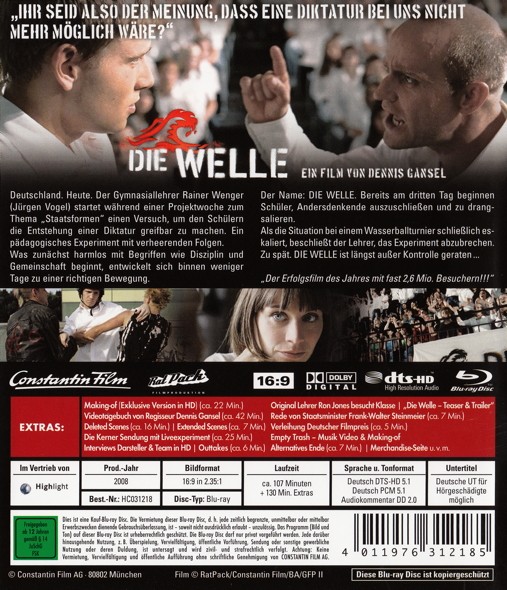 Was zunächst harmlos mit Begriffen wie Diziplin und Gemeinschaft beginnt, entwickelt sich binnen weniger Tage zu einer richtigen Bewegung. Der Name: DIE WELLE. Bereits am dritten Tag beginnen Schüler andersdenkende auszuschliessen und zu drangsalieren.