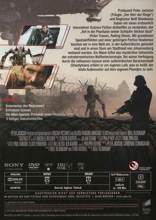 Produzent Peter Jackson (Trilogie "Der Herr der Ringe") und Regisseur Neill Blomkamp haben wir einen erstaunlich innovativen Science Fiction-Actionfilm zu verdanken, der "tief in die Phantasie seiner Schöpfer blicken lässt" (Peter Travers, Rolling Stone).