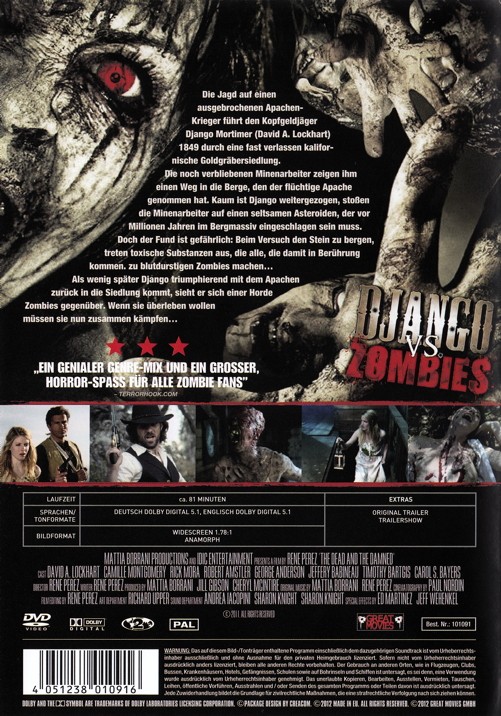 Die Jagd auf einen ausgebrochenen Apachen-Krieger führt den Kopfgeldjäger Django Mortimer 1849 durch eine fast verlassene kalifornische Goldgräbersiedlung. Die noch verbliebenen Minenarbeiter zeigen ihm einen Weg in die Berge, den der flüchtige Apache genommen hat. Kaum ist Django weitergezogen, stossen die Minenarbeiter auf einen seltsamen Asteroiden, der vor Millionen Jahren im Bergmassiv eingeschlagen sein muss. Doch der Fund ist gefährlich. Beim Versuch den Stein zu bergen, treten toxische Substanzen aus, die alle, die damit in Berührung kommen zu blutdurstigen Zombies mach. Als wenig später Django triumphierend mit dem Apachen zurück in die Siedlung kommt, sieht er sich einer Horde Zombies gegenüber. Wenn sie überleben wollen, müssen sie nun zusammen kämpfen. Für alle Fans von "Cowboys and Aliens" und "Django Unchained"!