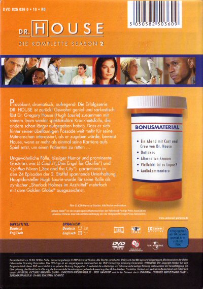 Er liebt Seifenopern, geht am Stock, ist ein diagnostisches Genie und misstraut allen Patienten: Dr. Gregory House kann medizinische Rätsel lösen, an denen andere Ärzte hilflos scheitern. Unterstützt von einem junge Ärzteteam, das in seinem Auftrag auch schon einmal Einbrüche verübt, kann House mit unkonventionellen Methoden und beißendem Sarkasmus auch in den 24 Episoden der zweiten Staffel der Erfolgsserie jede Menge Menschenleben retten - bis er selbst vom Ehemann einer Ex-Patientin niedergeschossen wird...
