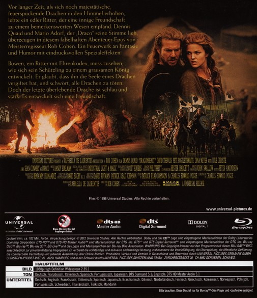 In diesem atemberaubenden Fantasy- und Action-Spektakel geht es einem Herrn der Finsternis an den Kragen. Die beiden, die ihm den Kampf angesagt haben, bilden das ungewöhnlichste Team des Action-Films: Der letzte der tapferen Ritter und ein mächtiger Drache (Stimme: Mario Adorf). Sensationelle Special-Effects der "Jurassic Park"-Klasse garantieren ein Saison Highlight.