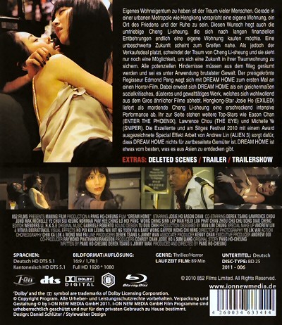Der preisgekrönte Regisseur Edmond Pang inszeniert mit Dream Home ein gleichermaßen sozialkritisches, düsteres und gewalttätiges Werk, welches sich wohlwollend aus dem Gros ähnlicher Filme abhebt. Hongkong-Star Josie Ho (Exiled) liefert als mordende Wohnungssuchende eine erschreckend intensive Performance. Ihr zur Seite stehen weitere Top-Stars wie Eason Chan (Enter The Phoenix), Lawrence Chou (The Eye) und Michelle Ye (Sniper). Die am Sitges Festival 2010 mit einem Award ausgezeichnete Special Effekt Arbeit von Andrew Lin (Alien 3) sorgt dafür, dass Dream Home nichts für zartbesaitet Gemüter ist.