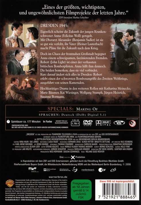 Dresden 1945: Eigentlich scheint die Zukunft der jungen Krankenschwester Anna geregelt. Mit Oberarzt Alexander ist sie so gut wie verlobt, ihr Vater macht Pläne für die Zukunft nach dem Krieg. Doch im Chaos der frontnahen Grossstadt begegnet Anna einem schweigsamen, faszinierenden Fremden. Robert ist einer der verhassten britischen Bomberpiloten. Anna hilft ihm dennoch. Die beiden bemerken, dass sie viel verbindet. Kurz darauf ändert sich alles in Dresden: Robert erlebt einen der schwersten Bombenangriffe des Zweiten Weltkriegs, ausgeführt von seinen Kameraden.