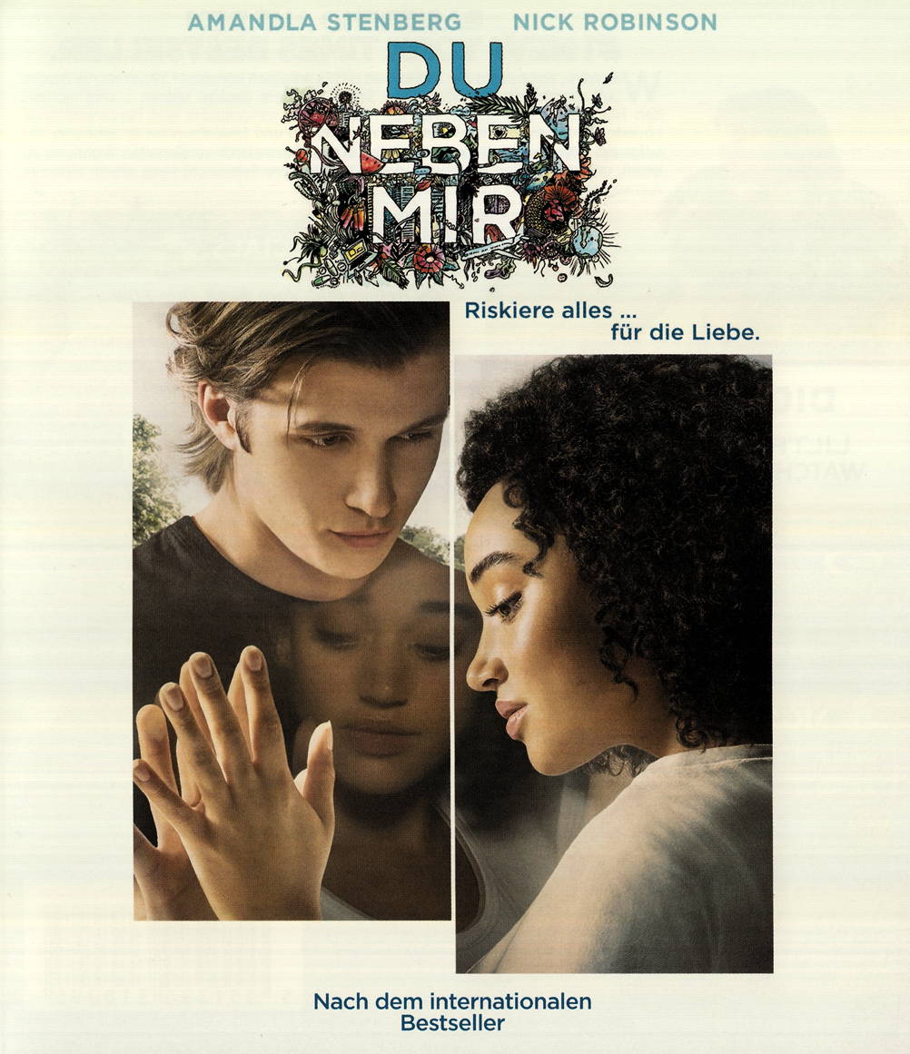 Was wäre, wenn du in der Außenwelt nichts anfassen könntest? Wenn du nie frische Luft atmen, nie die Wärme der Sonne auf dem Gesicht spüren … und niemals den Nachbarsjungen küssen dürftest? „Du neben mir“ ist eine Lovestory, die scheinbar keine Zukunft hat: Die clevere, neugierige und fantasievolle 18-jährige Maddy ist aufgrund ihrer Krankheit gezwungen, in ihrer hermetisch versiegelten Wohnung zu leben – doch Nachbarsjunge Olly lässt sich davon nicht abschrecken.