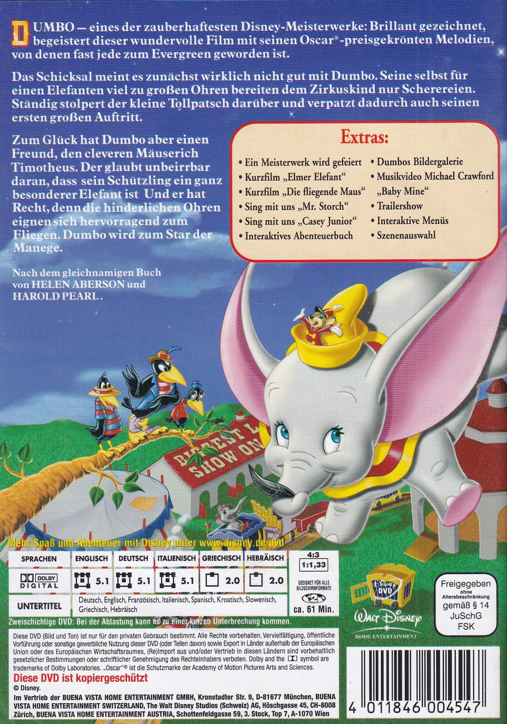 Das Schicksal meint es zunächst nicht gut mit Dumbo. Seine selbst für einen Elefanten viel zu grossen Ohren bereiten ihm nur Scherereien und sorgen bei den anderen Zirkustieren für viel Gelächter. Mit der Hilfe der cleveren Maus Timothy, einer magischen Zauberfeder und jeder Menge Mut erkennt Dumbo, dass er ein ganz besonderer Elefant ist. Denn die hinderlichen Ohren eignen sich hervorragend zum Fliegen und machen Dumbo zum Star der Manege...