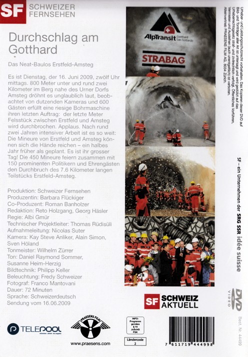 Es ist Dienstag, 16. Juni 2009, 12.00 Uhr. 800 Meter unter und rund zwei Kilometer im Berg nahe des Urner Dorfs Amsteg dröhnt es unglaublich laut, beobachtet von dutzenden Kameras und rund 600 Gästen erfüllt eine riesige Bohrmaschine ihren letzten Auftrag: der letzte Meter Felsstück zwischen Erstfeld und Amsteg wird durchbrochen. Applaus. Nach rund zwei Jahren intensiver Arbeit ist es soweit: die Mineure von Erstfeld und Amsteg können sich die Hände reichen - ein halbes Jahr früher als geplant. Es ist ihr grosser Tag! Die 450 Mineure feiern zusammen mit 150 prominenten Politikern und Ehrengästen den Durchbruch des 7.6 Kilometer langen Teilstücks Erstfeld - Amsteg.