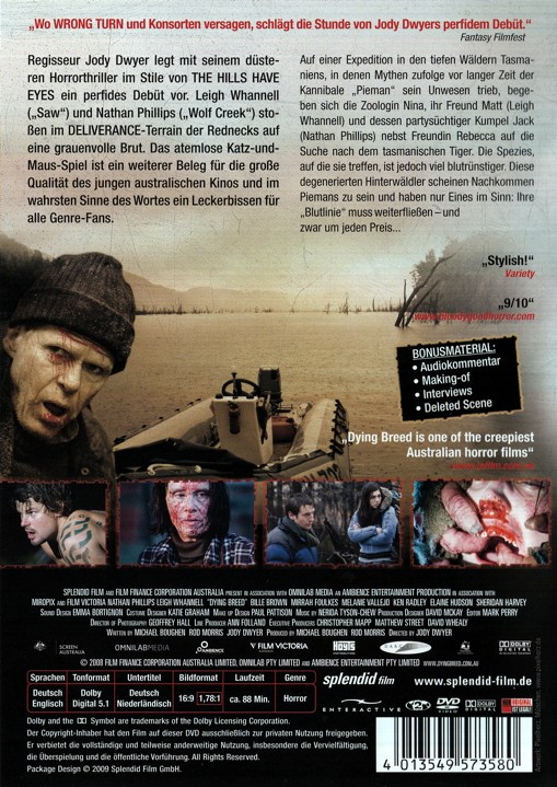 Auf einer Expedition in den tiefen Wäldern Tasmaniens, in denen Mythen zufolge vor langer Zeit der Kannibale Pieman sein Unwesen trieb begeben sich die Zoologin Nina, ihr Freund Matt und dessen partysüchtiger Kumpel Jack nebst Freundin Rebecca auf die Suche nach dem tasmanischen Tiger. Stattdessen trefen sie auf eine grauenvoll mutierte Spezies. Diese degenerierten Hinterwäldler scheinen Nachkommen Piemans zu sein und haben nur Eines im Sinn: Ihre Blutlinie muss weiterfliessen - und zwar um jeden Preis...