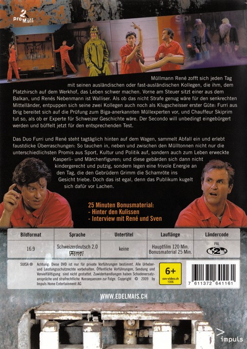 Das Duo Furri und René steht tagtäglich hinten auf dem Wagen, sammelt Abfall ein und erlebt faustdicke Überraschungen: So tauchen in, neben und zwischen den Mülltonnen nicht nur die unterschiedlichsten Promis aus Sport, Kultur und Politik auf, sondern auch zum Leben erweckte Kasperli- und Märchenfiguren; und diese gebärden sich dann nicht kindergerecht und putzig, sondern legen eine frivole Energie an den Tag, die den Gebrüdern Grimm die Schamröte ins Gesicht triebe. Doch das ist egal, denn das Publikum kugelt sich dafür vor Lachen.