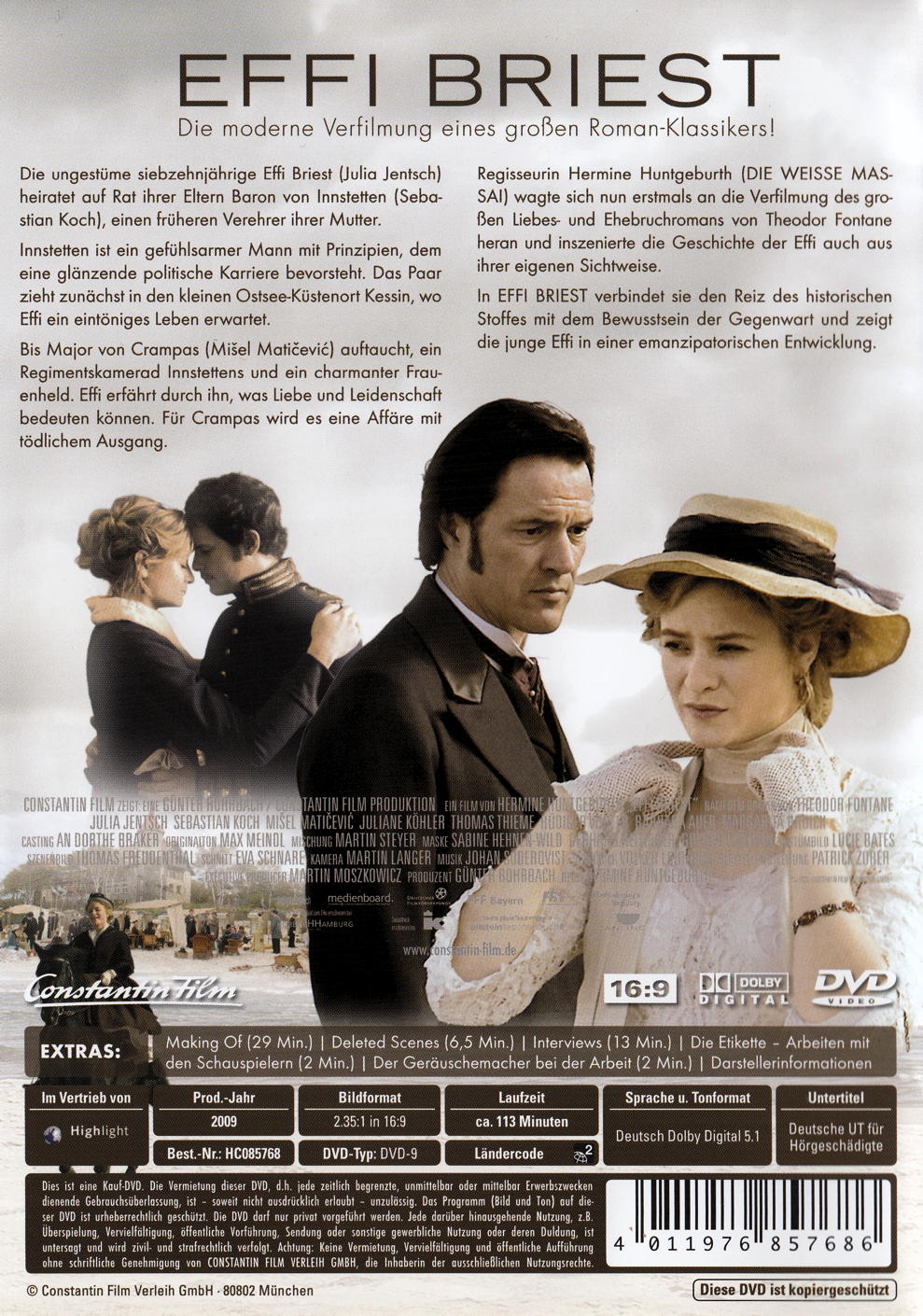 Auf Wunsch ihrer Eltern heiratet die temperamentvolle, siebzehnjährige Effi Briest den fast 20 Jahre älteren Baron von Innstetten - einen früheren Verehrer ihrer Mutter. Mit dieser aus Vernunft geschlossenen Ehe beginnt für Effi ein eintöniges Leben fernab der Heimat. Innstetten widmet sich voll und ganz seiner politischen Karriere und das verschlafene Ostsee-Küstenstädtchen Kessin bietet wenig Abwechslung. Ein Major Crampas taucht auf, ein Regimentskamerad Instettens und ein charmanter Frauenheld. Effi beginnt eine Leidenschaftliche Affäre mit ihm und erfährt endlich was Liebe bedeutet. Doch der Preis ist hoch: Für Crampas endet die Affäre tödlich. Effi hingegen wird - anders als bei Fontane - ihre Konsequenzen ziehen und den Schritt in ein neues Leben wagen.