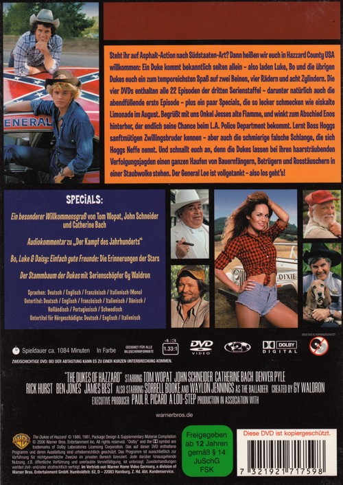 Steht ihr auf Asphalt-Action nach Südstaaten-Art? Dann heißen wir euch in Hazzard County USA willkommen: Ein Duke kommt selten allein - also laden Luke, Bo und die übrigen Dukes euch ein zum temporeichsten Spaß auf zwei Beinen, vier Rädern und acht Zylindern. Begrüßt mit uns Onkel Jesses alte Flamme, und winkt zum Abschied Enos hinterher, der endlich seine Chance beim L.A. Police Department bekommt. Lernt Boss Hoggs sanftmütigen Zwillingsbruder kennen - aber auch die schmierige falsche Schlange, die sich Hoggs Neffe nennt. Und schnallt euch an, denn die Dukes lassen bei ihren haarsträubenden Verfolgungsjagden einen ganzen Haufen von Bauernfängern, Betrügern und Rosstäuschern in einer Staubwolke stehen. Der General Lee ist vollgetankt - also los geht's!