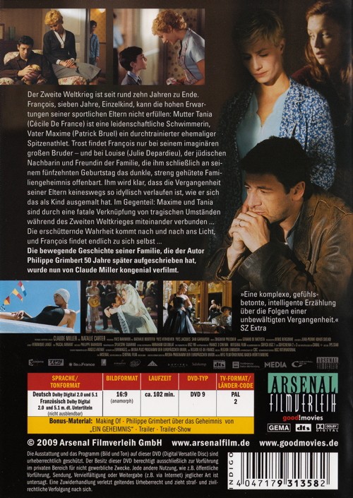 Der Zweite Weltkrieg ist seit rund zehn Jahren zu Ende. François, sieben Jahre, Einzelkind, kann die hohen Erwartungen seiner schönen und sportlichen Eltern nicht erfüllen: Mutter Tania ist eine leidenschaftliche Schwimmerin, Vater Maxime ein durchtrainierter ehemaliger Spitzenathlet. Trost findet François bei seinem imaginären großen Bruder und bei Louise, der jüdischen Nachbarin und Freundin der Familie. Sie erzählt ihm schließlich an seinem fünfzehnten Geburtstag das dunkle, streng gehütete Familiengeheimnis. Ihm wird klar, dass die Vergangenheit seiner Eltern keineswegs so idyllisch verlaufen ist, wie er sich das als Kind ausgemalt hat. Im Gegenteil: Maxime und Tania sind durch eine fatale Verknüpfung von tragischen Umständen während des Zweiten Weltkrieges miteinander verbunden...