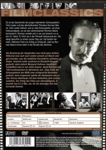 Hinter der melodramatischen Struktur des Stoffes, der vom Film "What Price Hollywood? (1932) inspiriert ist, haben Produzent Selznick, Regisseur William Wellman und die Drehbuchautoren satirische Seitenhiebe auf die Hollywood-Maschinerie versteckt. Es gibt Anspielungen auf die Schauspieler John Gilbert und John Barrymore. Sieben Oscar-Nominierungen 1938. Oscars für das Beste Originaldrehbuch und Ehren-Oscar für die Qualität der Farbkamera (W. Howard Greene). Der Oscar für den besten Film ging an "Das Leben des Emile Zola".