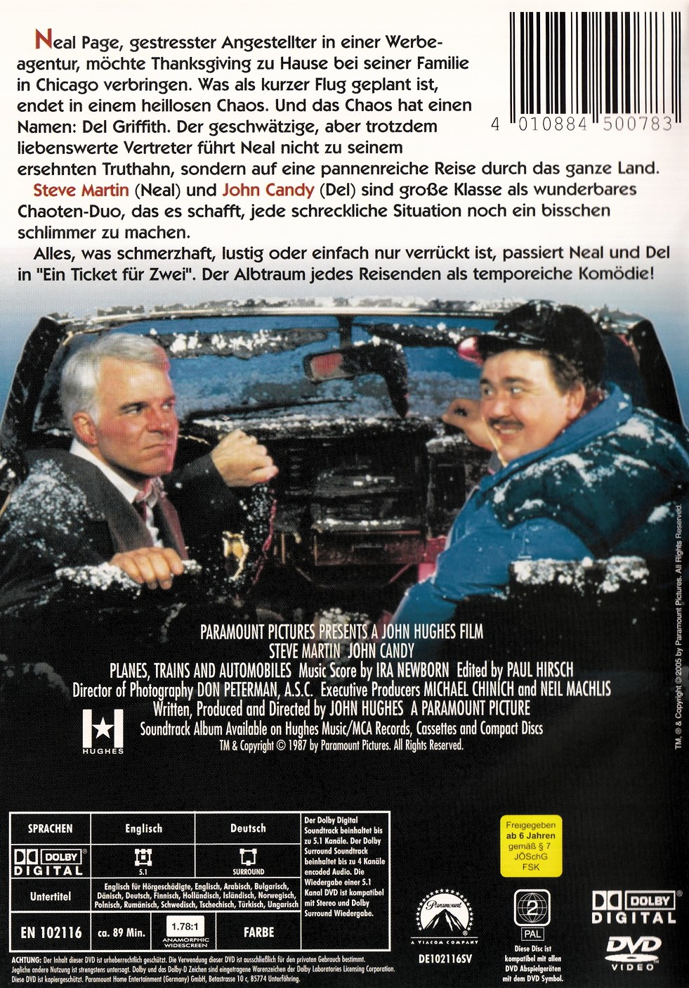 Manch ein Reisender verspätet sich. Wieder andere müssen Umleitungen in Kauf nehmen. Die Unglücklichsten unter den Reisenden allerdings treffen auf Del Griffith, einem Verkäufer für Duschvorhangringe. So auch der Geschäftsmann Neal Page auf seinem Nachhauseweg von New York nach Chicago. Eigentlich wollte er mit seiner Familie Thanksgiving feiern. Doch ein Schneesturm sorgt dafür, dass das Flugzeug umgeleitet wird. Griffith bietet sich Page als Reisehelfer an, was die beiden von einem Desaster in's andere treibt. Ob im Flugzeug, per Anhalter auf einem Kühlschranktransporter, in einem Taxi mit einem verrückten Chauffeur, im Zug oder im Motel, in dem sie schliesslich auch noch das Bett teilen müssen - das Chaos scheint perfekt. Wie und ob die beiden in Chicago ankommen, die Antwort auf diese Frage bringt "Ein Ticket für Zwei".