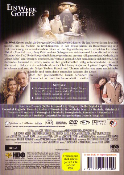 Ein Werk Gottes erzählt die bewegende Geschichte zweier Männer, die den Konventionen ihrer Zeit trotzten, um die Medizin zu revolutionieren: In den 1940er-Jahren, als Rassentrennung und Diskriminierung im amerikanischen Süden an der Tagesordnung waren, arbeiteten Dr. Alfred Blalock und Labor-Techniker Vivien Thomas in Baltimore gemeinsam an einer völlig neuartigen Methode, um "blaue Babys" am Herzen zu operieren. Im Wettlauf gegen die Zeit bemühen sie sich fieberhaft, ein sterbendes Kleinkind zu retten, wobei sie ihre gesellschaftlich völlig unterschiedliche Herkunft überwinden: Blalock ist der wohlhabende weisse Chefchirurg des Johns Hopkins Hospital; Thomas ist schwarz und arm, ein fähiger Tischler. Blalock und Thomas erfinden eine neue medizinische Disziplin und retten damit Tausenden Patienten das Leben - doch der gesellschaftliche Druck behindert ihre Teamarbeit und droht ihre Freundschaft zu zerstören.