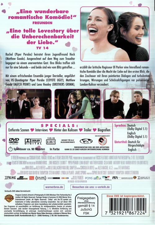 Rachel heiratet ihren Jugendfreund Heck. Ausgerechnet auf dem Weg zum Traualtar begegnet sie einem unerwarteten Gast. Ihre Blicke treffen sich, nur für eine Sekunde und beide sind wie vom Blitz getroffen... Mit einem erfrischenden Ensemble junger Darsteller, angeführt von US-Shootingstar Piper Perabo, Matthew Goode und Lena Headey erzählt der britische Regisseur Ol Parker eine hinreissend romantische Komödie über die Macht der Liebe auf den ersten Blick, die den Zuschauer mit ihren pointierten Dialogen und turbulenten Irrungen, Wirrungen und Schicksalsfügungen vor pulsierender London-Kulisse verzaubert.